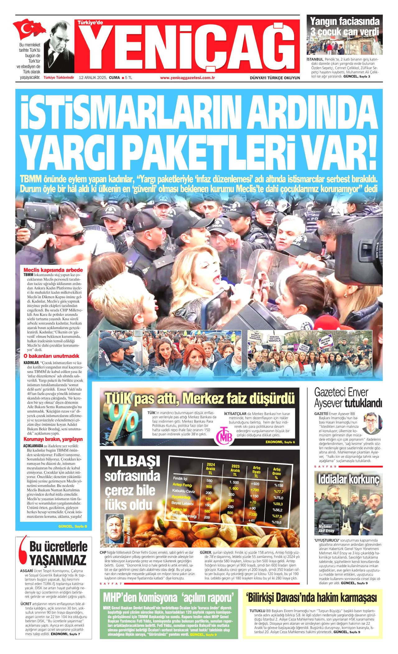 12 Aralık 2025 Cuma tarihli Yeniçağ Gazetesi manşeti